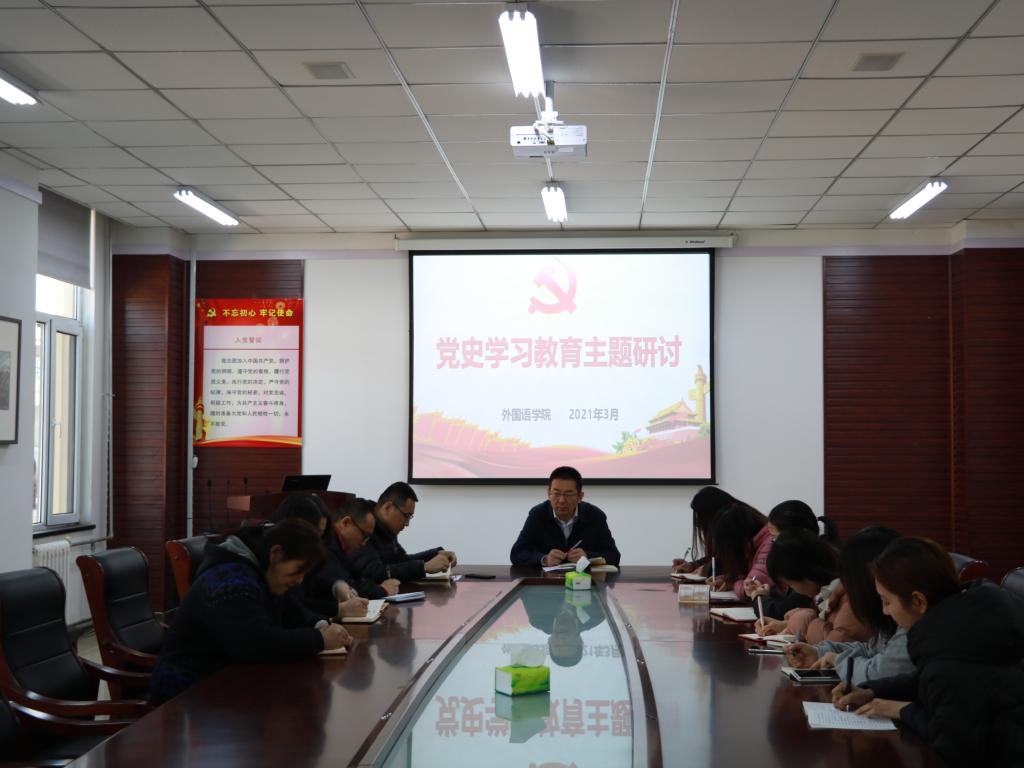3月22日上午,外国语学院召开了党史学习教育主题研讨会,学院党支部书记、全体行政人员和师生党员代表等参加会议,院党委书记刘兵主持。