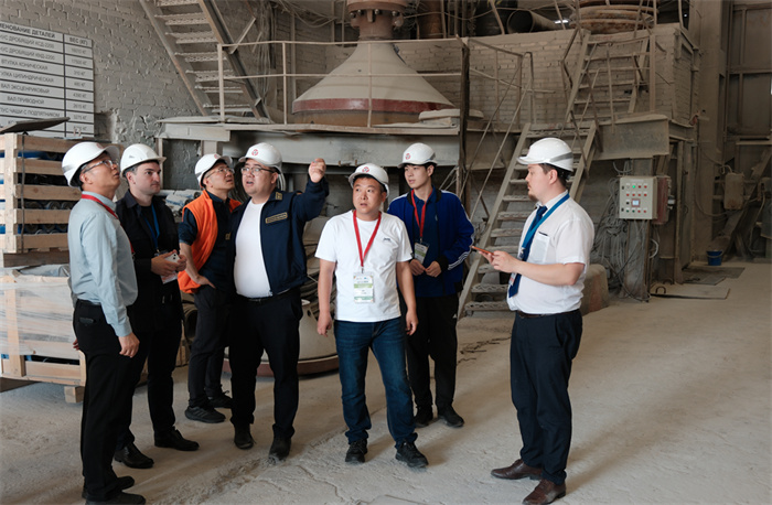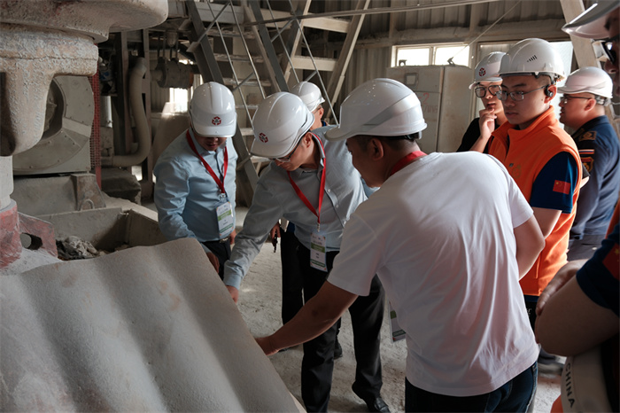 随后前往选矿厂参观矿石转化加工与精炼流程。依次参观了矿石的核心分选工艺原理与自动化控制系统的实践管控方法。师生们结合自身的专业知识背景,针对特定矿物的回收率优化、工艺参数的动态调整与中俄在选矿工艺与技术路线上的异同等深入话题与工程师们展开了激烈交流讨论。